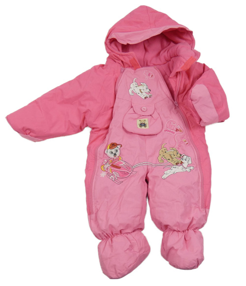 Ružová šušťáková zimná kombinéza s dalmatiny, medvedíkmi a kapucňou