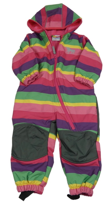 Farebná pruhovaná softshellová zateplená kombinéza s jednorožcom a kapucňou Umka Umka