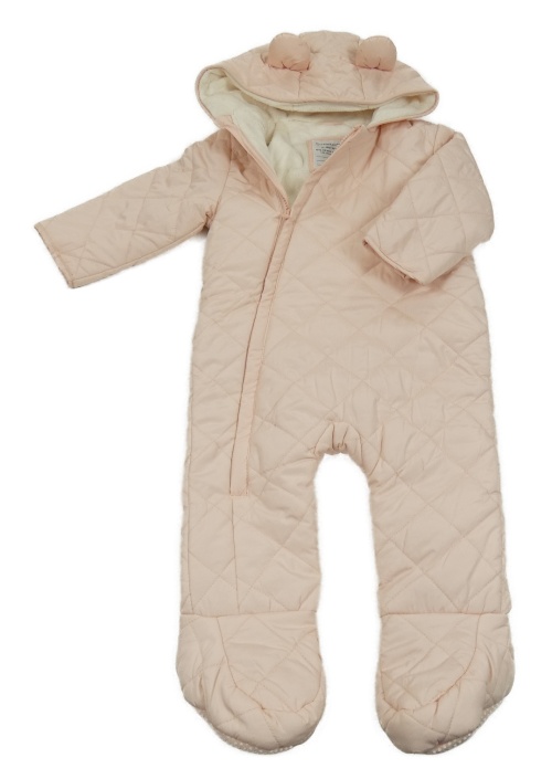 Svetloružová prešívaná šušťáková zimná kombinéza s kapucňou s uškami PRIMARK