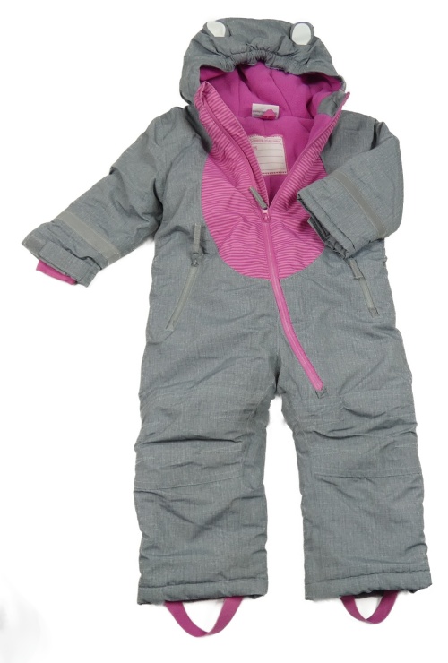 Sivo-ružová šušťáková zimná kombinéza s pruhmi a kapucňou Topomini
