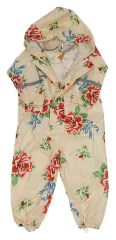 Nové - Smotanová kvetovaná šušťáková nepromokavá kombinéza s kapucňou