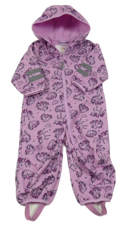 Lila softshellová kombinéza s jednorožcami a kapucňou INFINITY KIDS
