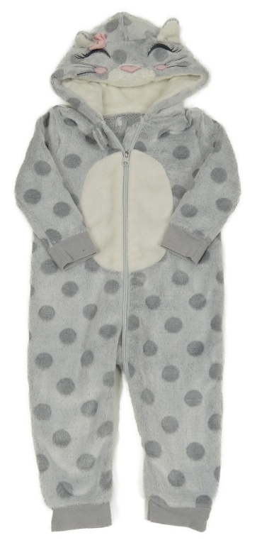Sivá bodkovaná á chlpatá kombinéza s kapucí - zvieratko