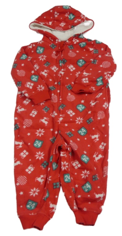 • Červená chlpatá kombinéza s vánočním motívom s kapucňou Lupilu