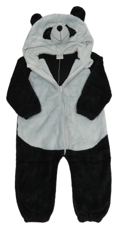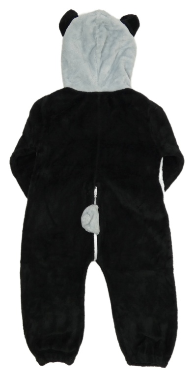 Čierno-svetlosivá plyšová kombinéza s kapucí - panda