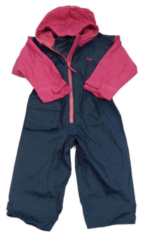 Malinovo-tmavomodrá šušťáková nepromokavá kombinéza s kapucňou