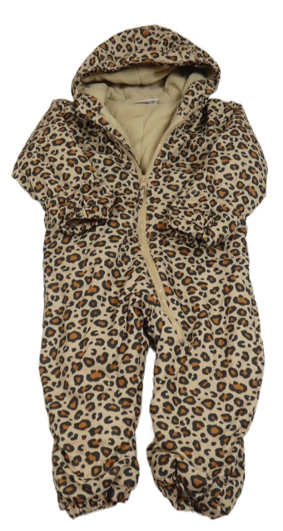 Hnedá šušťáková zimná kombinéza s leopardím vzorom a kapucňou Ergee