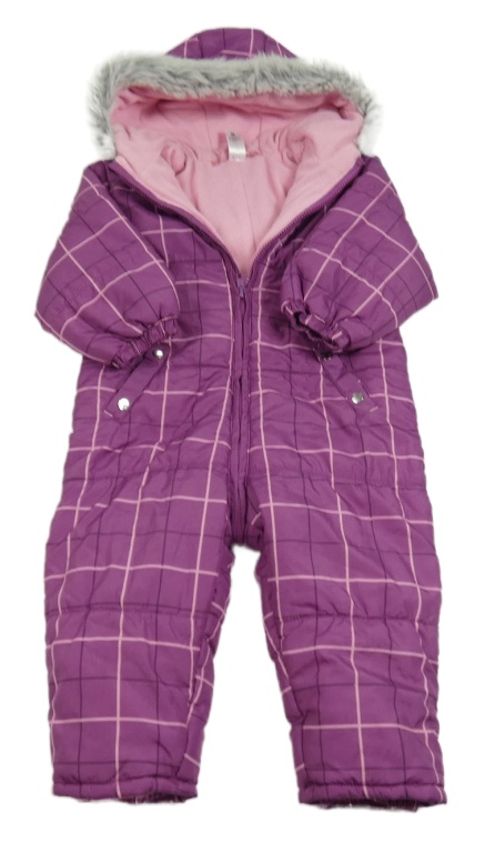 Ružovo-svetloružová kockovaná šušťáková zimná kombinéza s kapucňou C&A