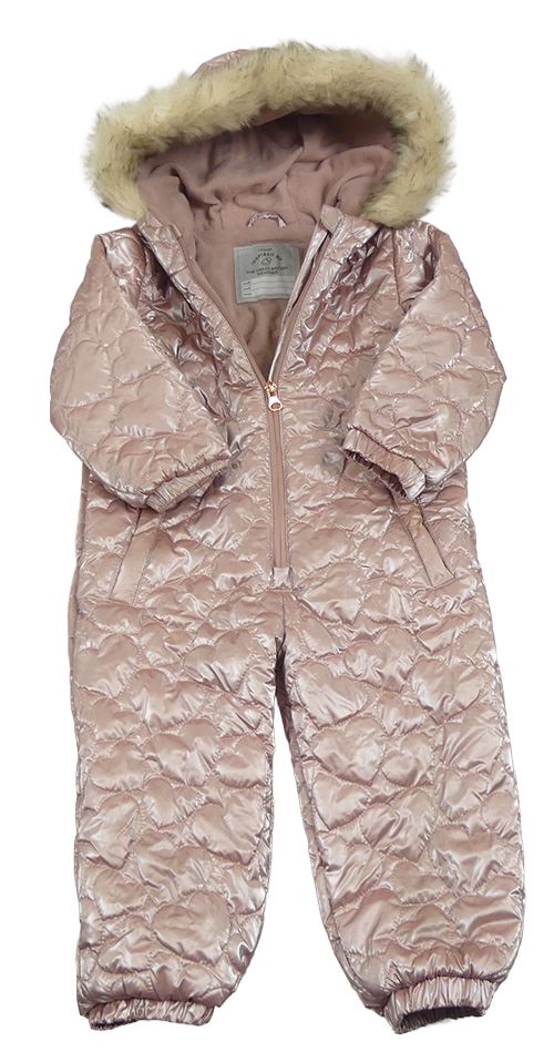 Svetloružová metalická prešívaná zimná kombinéza s kapucňou George