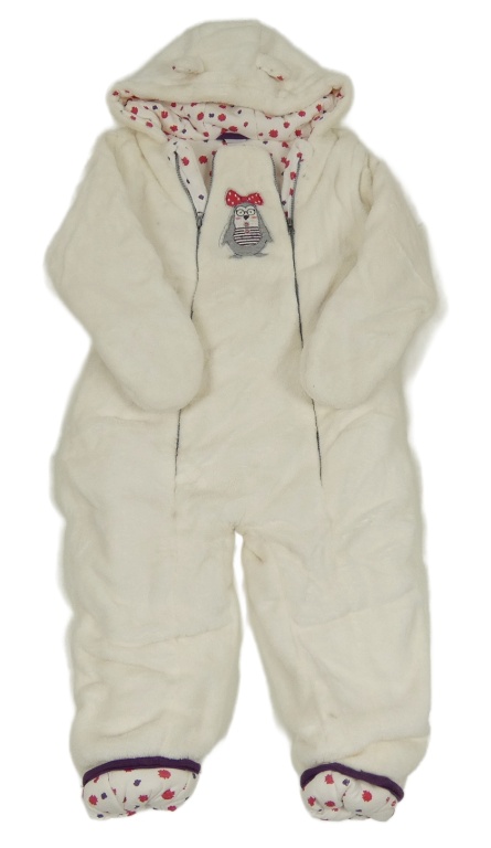 Biela plyšová zateplená kombinéza s tučňákem a kapucňou Papagino