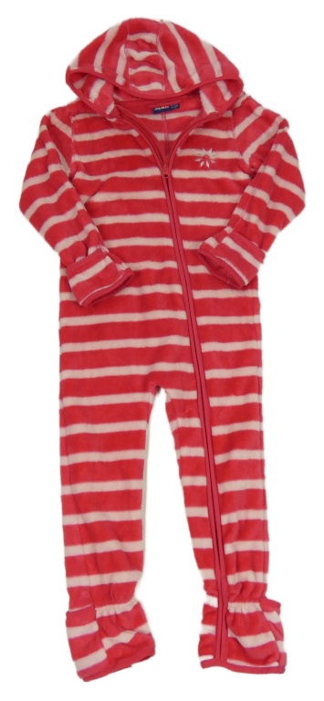 Ružová pruhovaná plyšová kombinéza s kapucňou Lupilu