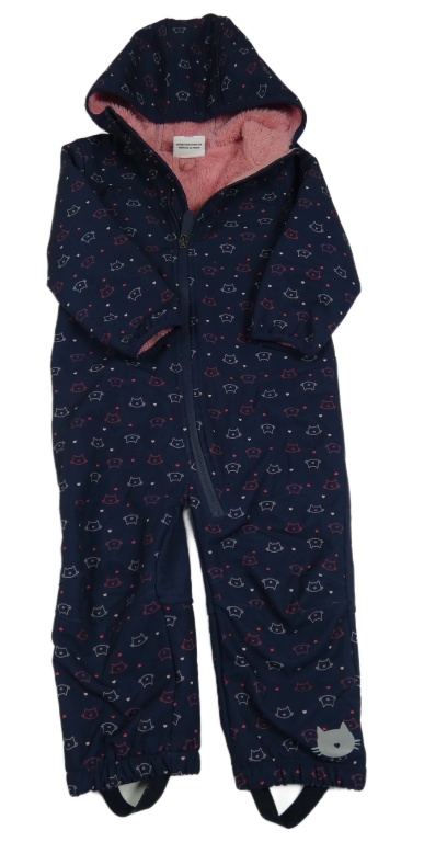 Tmavomodrá softshellová zateplená kombinéza s mačkami a kapucňou Topomini