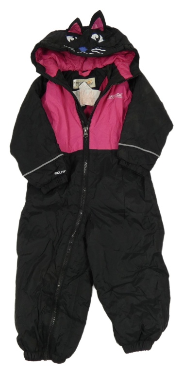 Čierno-ružová šušťáková zimná kombinéza s kapucí - mačka Regatta