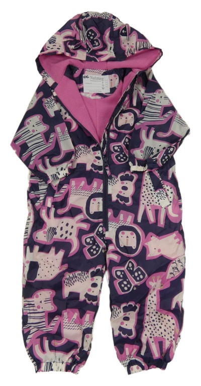 Fialovo-ružová šušťáková jarná kombinéza so zvieratkami a kapucňou Nutmeg
