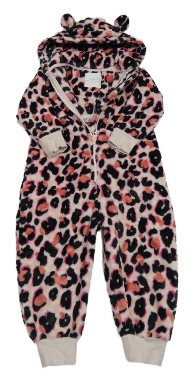 Svetloružová -čierno-jahodovo-tmavoružová vzorovaná plyšová kombinéza s kapucňou s uškami Next