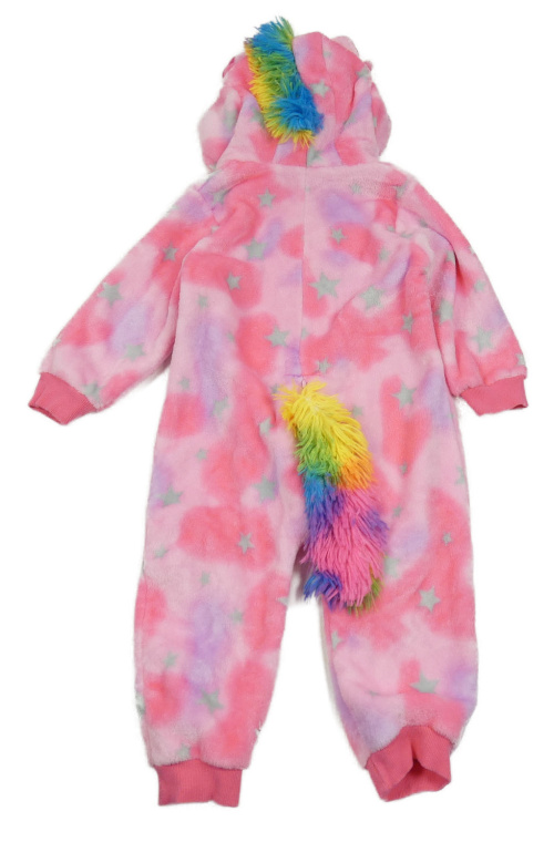 Ružovo-kriklavoě ružovo-fialová plyšová kombinéza s hviezdičkami a kapucí - jednorožec