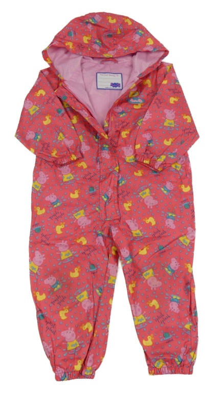Ružová bodkovaná á šušťáková podšitá kombinéza s Peppa pig a kapucňou Nutmeg