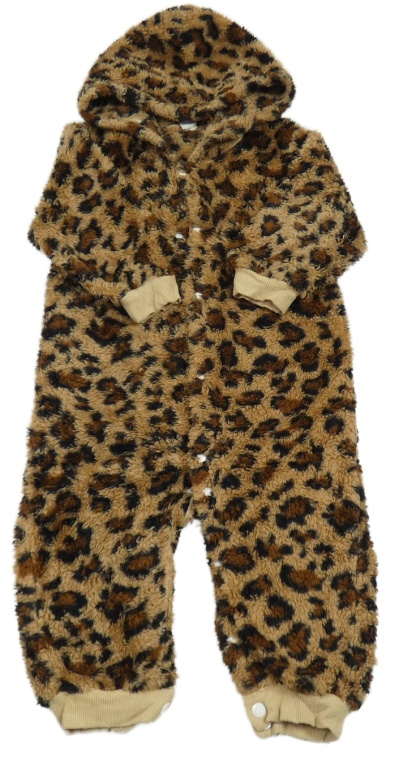 Hnedá leopardí chlpatá kombinéza s kapucňou Shein