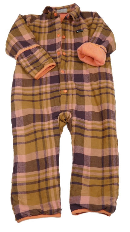 Hnedo-ružovo-fialová kockovaná podšitá kombinéza Columbia