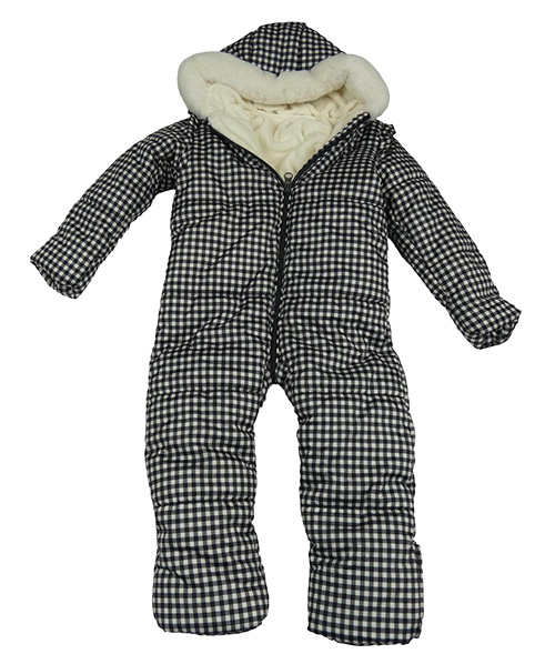 Čierno-smotanová kockovaná šušťáková zimná kombinéza s volánikmi a kapucňou George