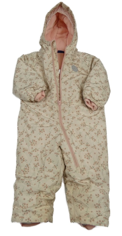 Světlepudrová šušťáková zimná kombinéza s kvietkami a kapucňou lupilu