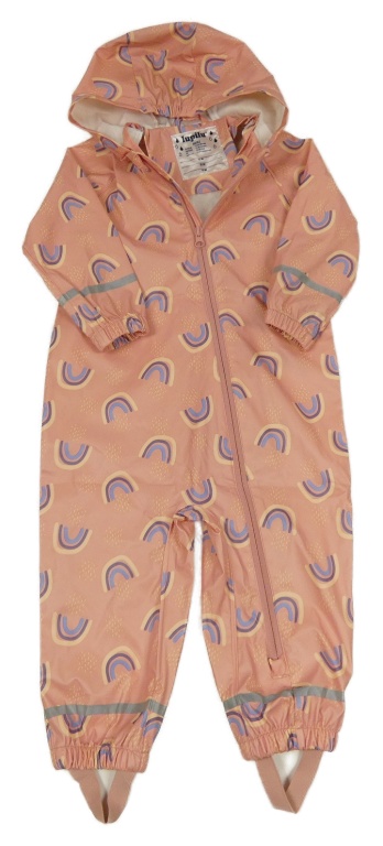 Pudrová nepromokavá kombinéza s duhami a kapucňou
