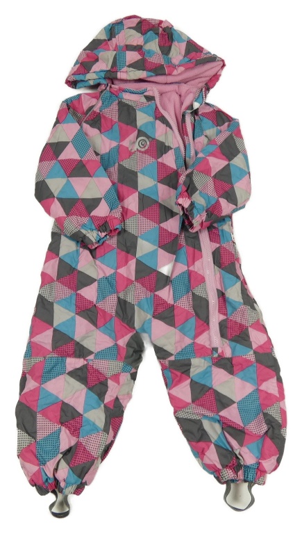 Modro-ružovo-sivá vzorovaná šušťáková zimná kombinéza s kapucňou