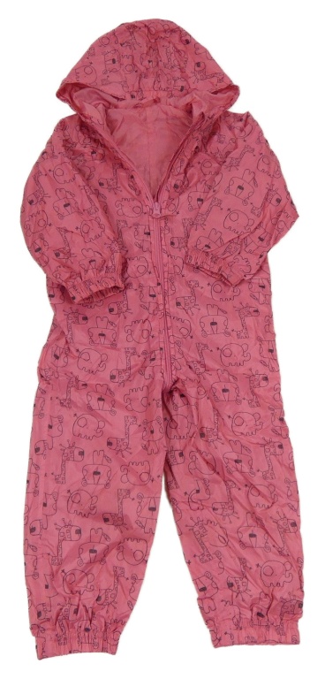Tmavoružová šušťáková jarná kombinéza so zvířaty a kapucňou Lily & Dan