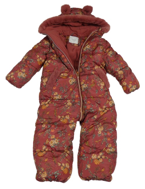 Tmavoružová kvetovaná šušťáková zimná kombinéza s kapucňou Next