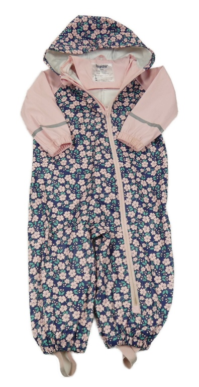 Tmavomodro-ružová nepromokavá kombinéza s kvietkami a kapucňou Lupilu