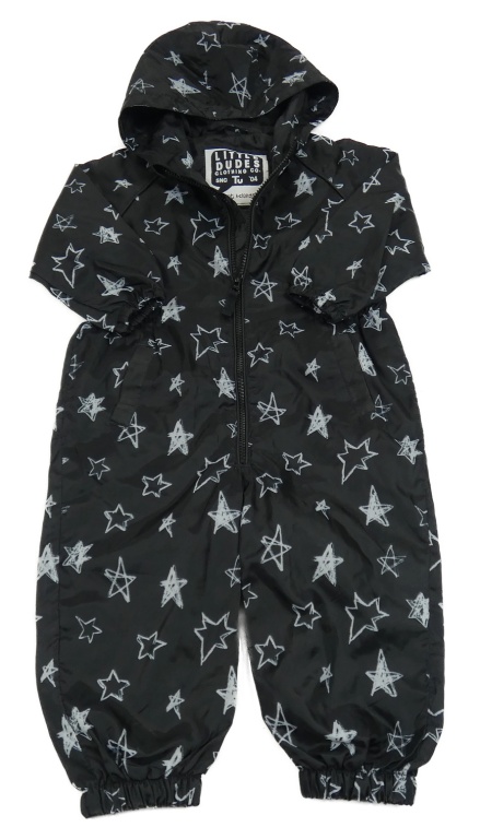 • Čierna šušťáková kombinéza s hviezdičkami a kapucňou Tu