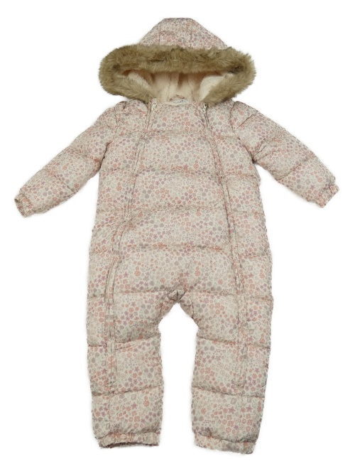 • Světlepudrová prešívaná šušťáková zimná kombinéza s kvietkami a kapucňou s kožešinou F&F