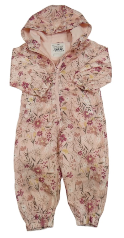 Svetloružová kvetovaná šušťáková jarná kombinéza s kapucňou F&F