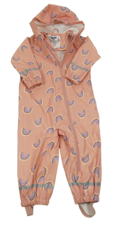 Svetloružová nepromokavá kombinéza s duhami a kapucňou Lupilu