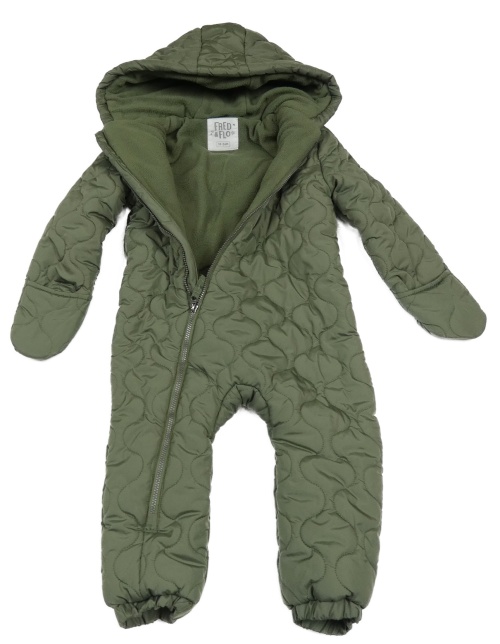 • Khaki prešívaná šušťáková zimná kombinéza s kapucňou F&F