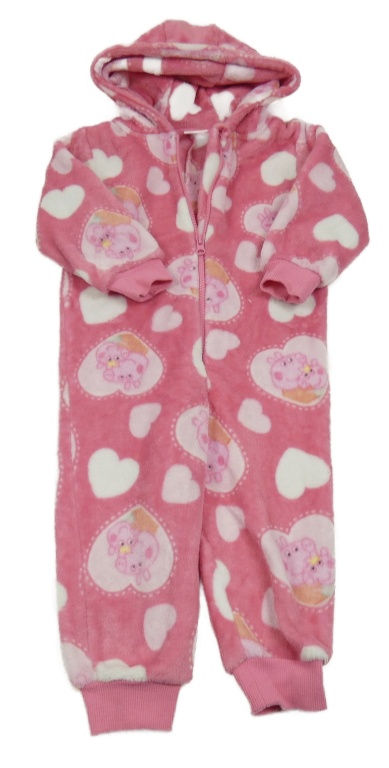 Ružová chlpatá bodkovaná á kombinéza s Peppou a kapucňou