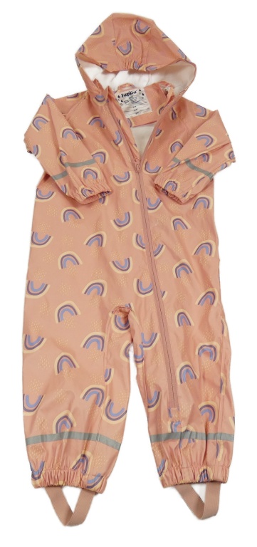 Ružová vodeodolná jarná kombinéza s duhami a kapucňou Lupilu