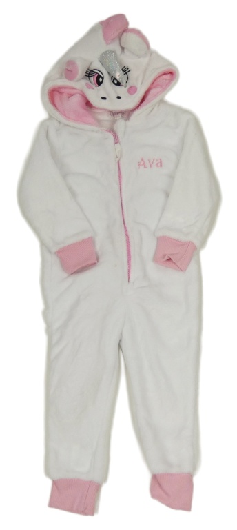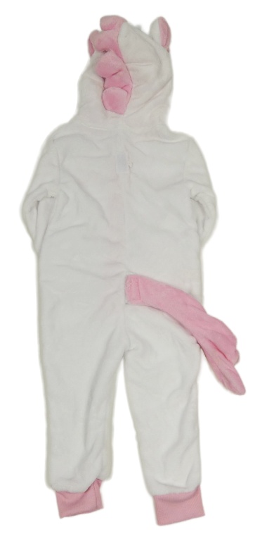 Biela plyšová kombinéza s ocasem a kapucí - jednorožec