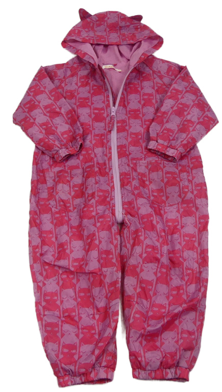 Ružovo-fialová šušťáková podšitá kombinéza s mačkami a kapucňou Bluezoo