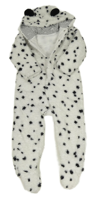 • Bielo-čierna bodkovaná á chlpatá podšitá kombinéza s kapucňou s oušky - dalmatin Mothercare