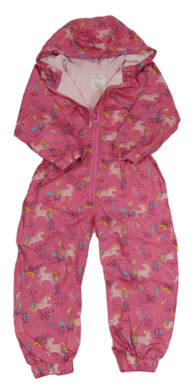 Tmavoružová šušťáková jesenná kombinéza s jednorožcami a kapucňou Matalan