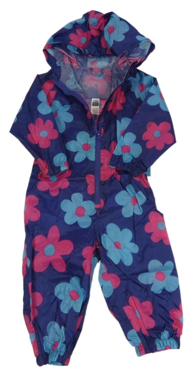 Tmavmodrá šušťáková kombinéza s kvietkami a kapucňou Dunnes