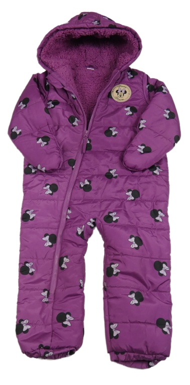 Borůvková prešívaná šušťáková zimná kombinéza s Minnie a kapucňou Disney