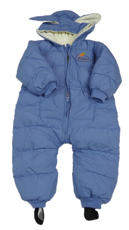 • Modrá prešívaná šušťáková zimná kombinéza s mrkvičkou a kapucňou s uškami