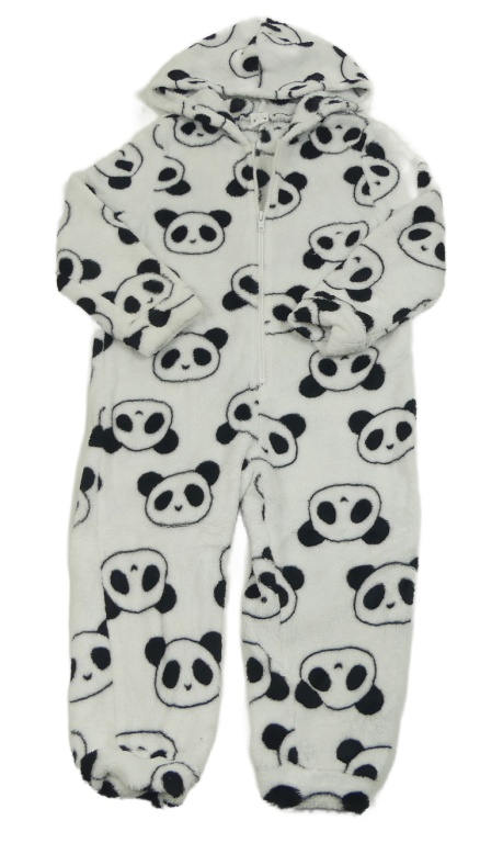 Biela chlpatá kombinéza s pandami a kapucňou Shein
