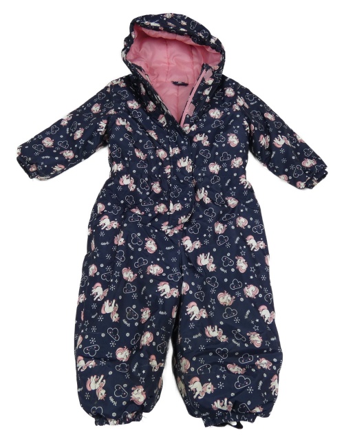 Tmavomodrá šušťáková zimná kombinéza s jednorožcami a obláčikmi a kapucňou Kiki&Koko