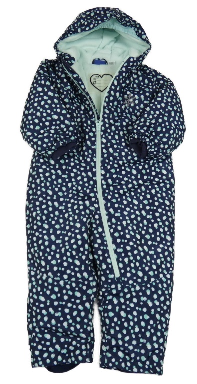 Tmavomodro-bielo-tyrkysová bodkovaná á šušťáková zimná kombinéza s kapucňou Lupilu