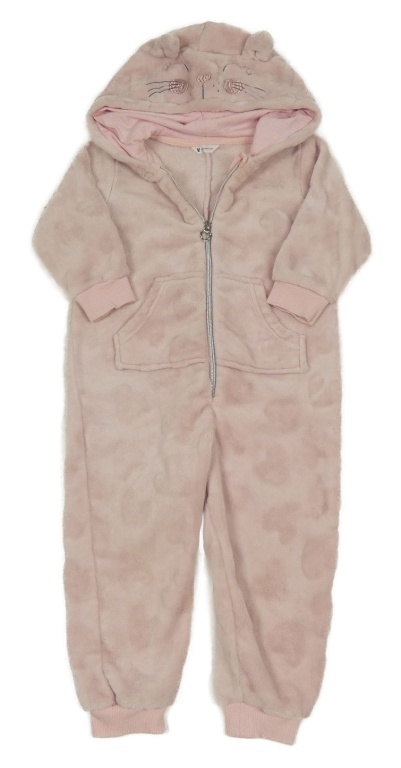 Svetloružová plyšová kombinéza so srdiečkami a kapucňou s ňufáčikom V by Very