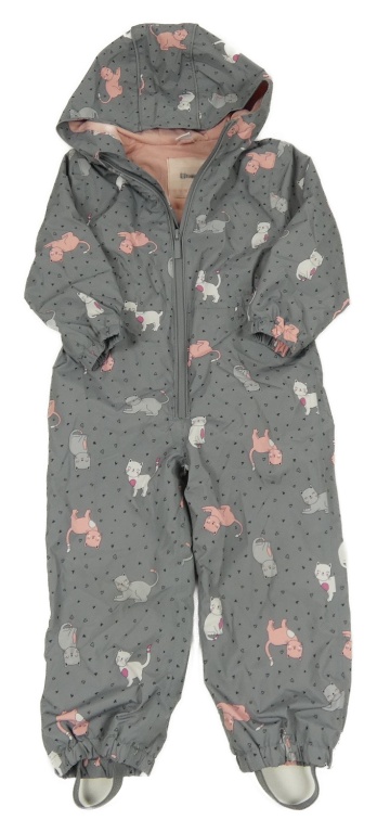 Sivá šušťáková jarná kombinéza s mačkami a kapucňou Topomini