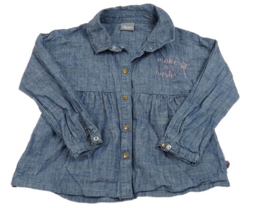 Modro-biela melírovaná rifľová blúzka s nápisom